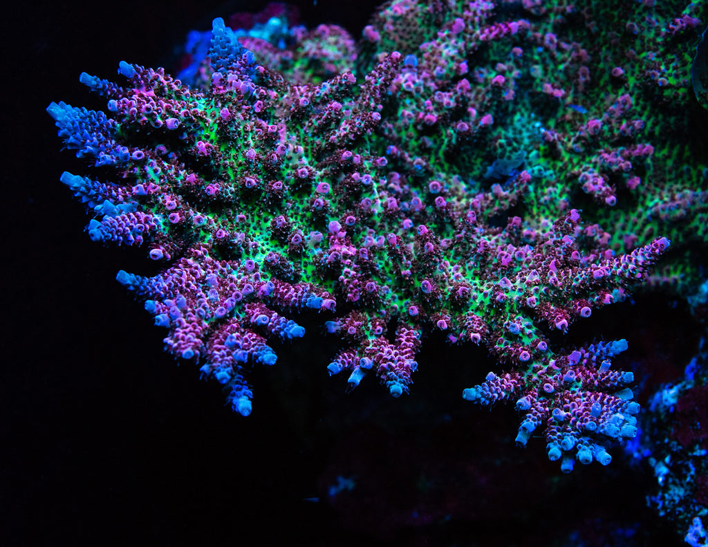 • Feeding – Acropora thrives from having fish present in the tank and regular feeding of amino acids and small zooplankton for both growth and coloration.