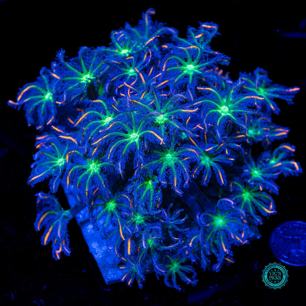 Clavularia can adapt to most areas of your reef, however, some genus do better under more intense lighting and even higher flow. As such we recommend placing these particular this leather at around mid-way in a lower light mixed reef (around 125 to 175 par) with medium alternating flow. Leathers really shouldn't be directly fed as their growth can be explosive if so and they can quickly take over a reef. Feeding your fish a tiny bit more a couple times a week should suffice.