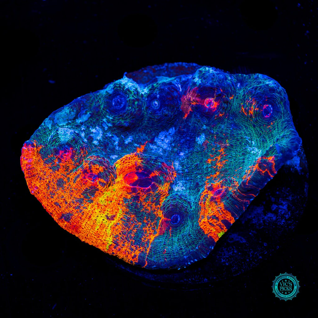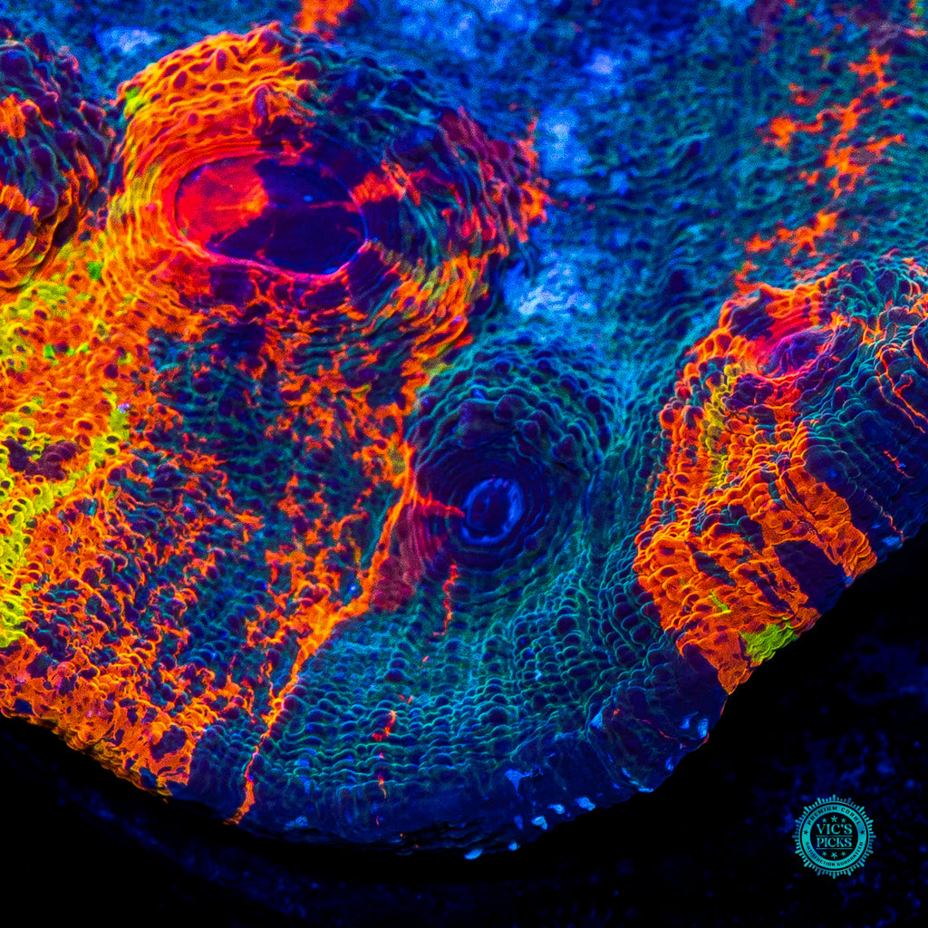 This chalice is perfect for the lower section of a mixed reef with par around 100 to 150 and low to medium-low flow. We also recommend to target feed this Chalice a tiny amount once a week, but only when it's feeding tentacles are extended a little bit (this usually occurs while feeding your fish, or before the lights come off or before they turn off for the night.)