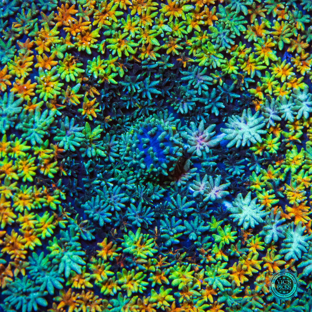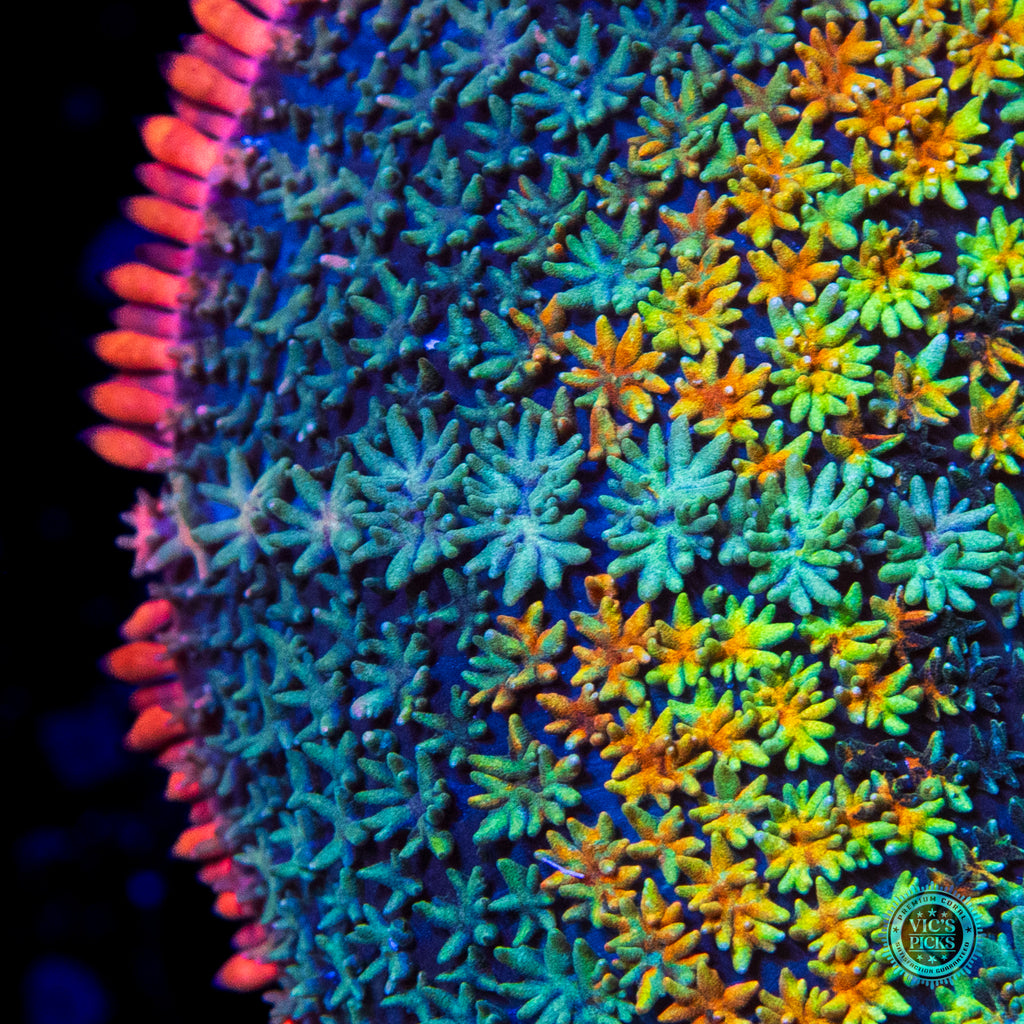 3.5" in diameter, WYSIWYG and fully conditioned by WWC! This particular Paradise Cove needs to color up just a bit more, but when it does, think of every shade of the rainbow can be found in this Carpet Mushroom! Now here's the cool fact about Carpet Mushrooms, they grow and grow and grow! We have had several grow to around 9" in diameter! So if you would like a gigantic mushroom to take up a lower section of reef, this is the shroom for you! Make sure to place this mushroom low, like super low in your reef (less than 100 par), with low flow. We also recommend target feeding it once per week, and if you do you'll be overjoyed to see it start to grow more quickly and eventually bud off and spread out in all directions! The trick with feeding Mushroom Corals is to hold a piece of meaty food in place with a pair of tweezers until the Mushroom grabs a hold of the food. And once the mushroom grabs onto it you will then be able to watch the cool process of the mushroom slowly closing up around the piece of food. It’s awesome to watch! Just like everything in reefing, be patient and you will be amazed at what transpires!