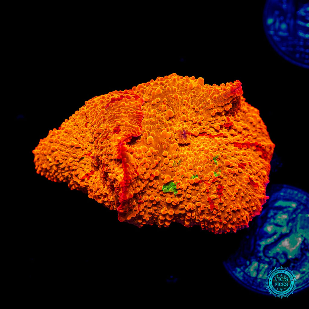 2.5" Two Polyps! WYSIWYG and fully aquacultured by WWC! Make sure to place this mushroom low, like super low in your reef (less than 100 par), with low flow. We also recommend target feeding it once per week, and if you do you'll be overjoyed to see it start to grow more quickly and eventually bud off and spread out in all directions! The trick with feeding Mushroom Corals is to hold a piece of meaty food in place with a pair of tweezers until the Mushroom grabs a hold of the food. And once the mushroom grabs onto it you will then be able to watch the cool process of the mushroom slowly closing up around the piece of food. It’s awesome to watch! Just like everything in reefing, be patient and you will be amazed at what transpires! We will ship all VP high-end mushrooms in cups so that they can settle into their reef on their own time. However, there is a good chance the mushroom might come loose during shipping therefore we ship an additional bag with a lidded perforated cup which is full of rubble from the same grow-out tank. That way you can place the mushroom into this cup if it does indeed come detached.