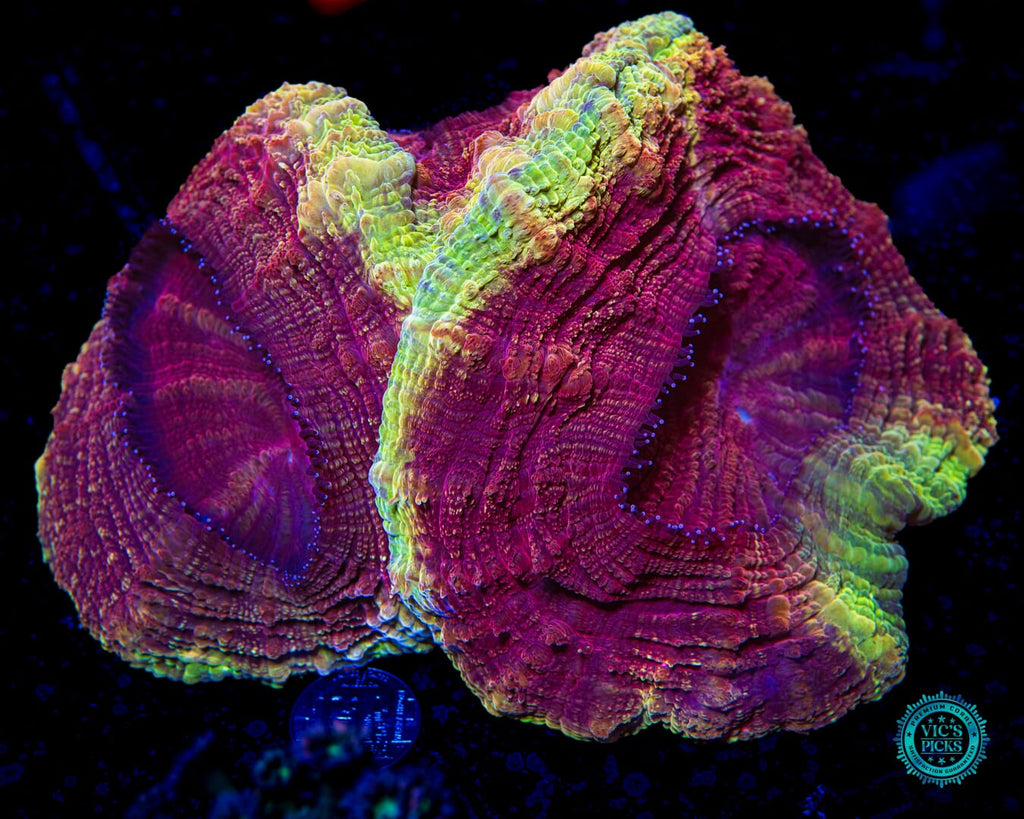 8" in diameter, Three Polyps! WYSIWYG and fully conditioned by WWC! This piece is stupid crazy with three polyps growing out of the same colony! Ridiculous! Don't sleep on this piece its super duper rare!
