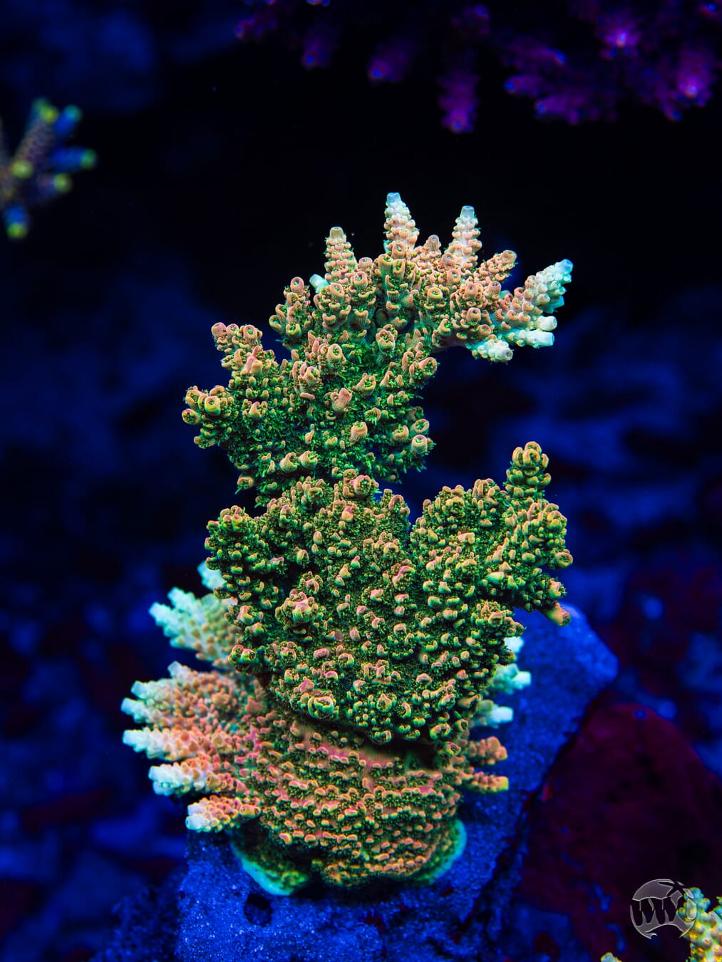 • Feeding – Acropora thrives from having fish present in the tank and regular feeding of amino acids and small zooplankton for both growth and coloration.