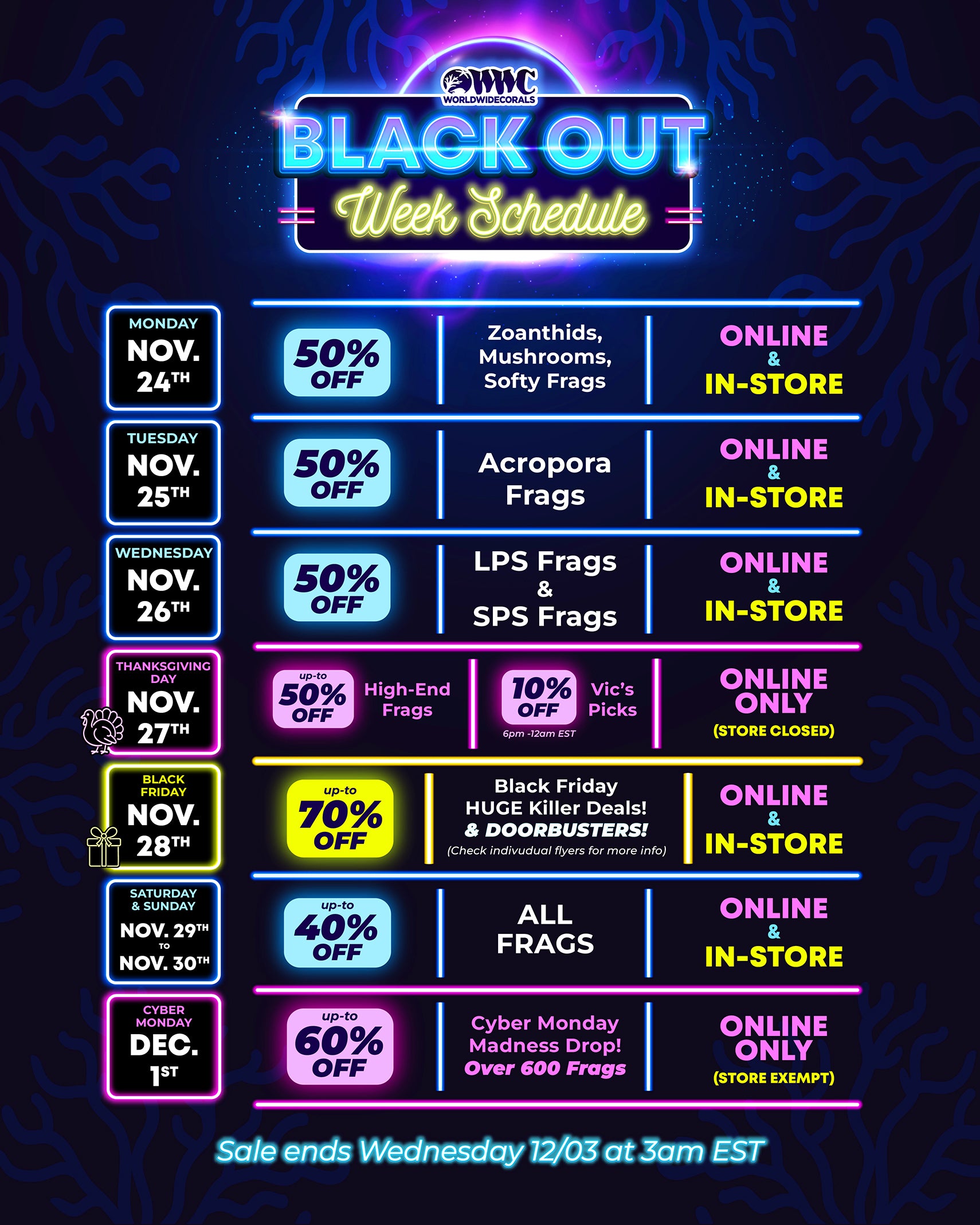 Secure your shipping date today. Sale starts November 24th. Once you pay for shipping once you can shop all week and we will combine your order. Choose a shipping date between December 2nd and 5th. Checkout with your address and shipping cost is calculated at checkout. NO Free shipping during the sale.