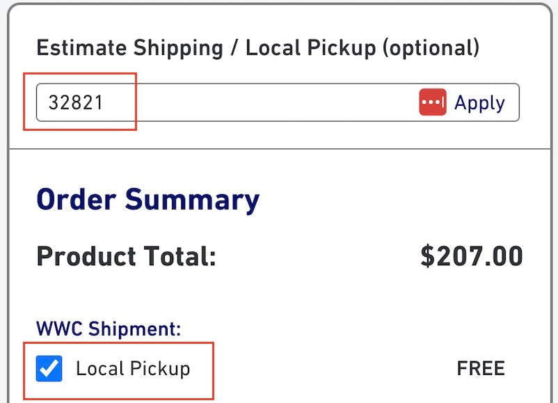 Place your order online and pick up in-store. Shop for WWC Standard Inventory, Vic's Picks Corals, WWC WYSIWYG, WWC Frag Packs, WWC Outlet, WWC Inverts, and WWC Merch at home and pick them up at our Orlando retail store location. To enable local pickup add your Florida Zip Code to the shipping estimator in the cart or choose local pick up on the checkout page after adding your Florida address.