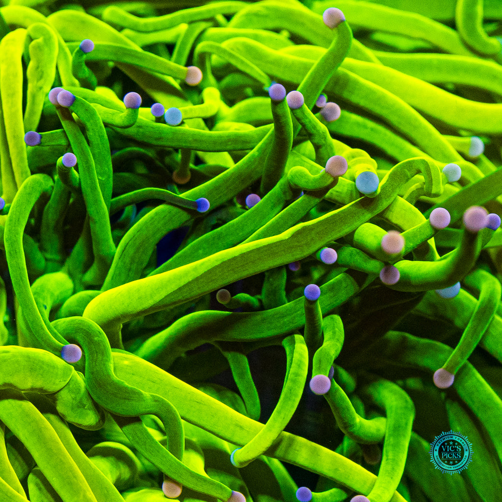 5.5" in diameter, WYSIWYG and fully conditioned to life in a reef tank by WWC! This torch is grafted! How cool is that!?!