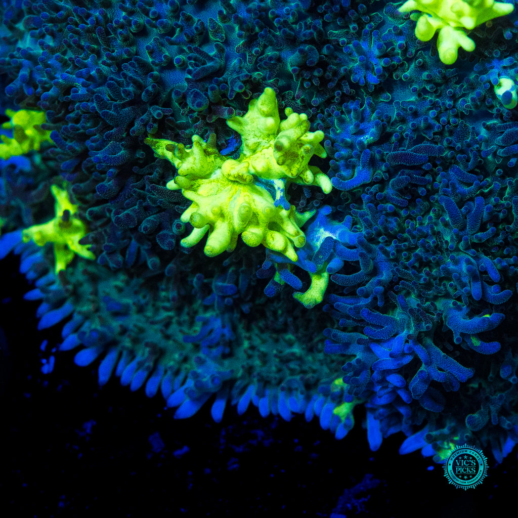 Now here's the cool fact about Carpet Mushrooms, they grow and grow and grow! We have had several grow to around 9" in diameter! So if you would like a gigantic mushroom to take up a lower section of reef, this is the shroom for you! Make sure to place this mushroom low, like super low in your reef (less than 100 par), with low flow. We also recommend target feeding it once per week, and if you do you'll be overjoyed to see it start to grow more quickly and eventually bud off and spread out in all directions! The trick with feeding Mushroom Corals is to hold a piece of meaty food in place with a pair of tweezers until the Mushroom grabs a hold of the food. And once the mushroom grabs onto it you will then be able to watch the cool process of the mushroom slowly closing up around the piece of food. It’s awesome to watch! Just like everything in reefing, be patient and you will be amazed at what transpires!