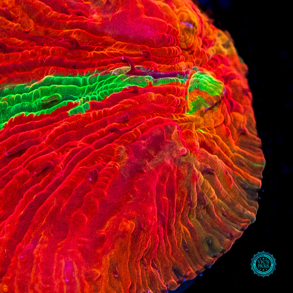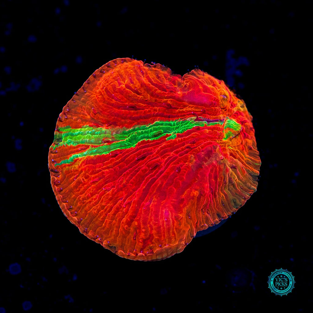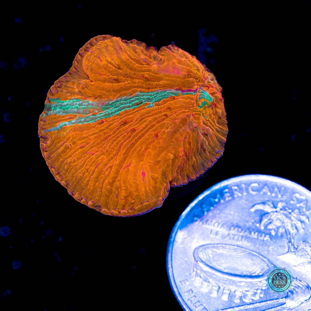 1" WYSIWYG and fully aquacultured by WWC! Our Diablo Hot sauce is screaming hot, but Diaseris plate coral is even hotter! It's quite possibly the most screaming red of any coral! I mean it is RED!!! Oh and it's grafted too, as it will gain streaks of purple, green and gold as it grows outward! A must have for any rare LPS collector!
