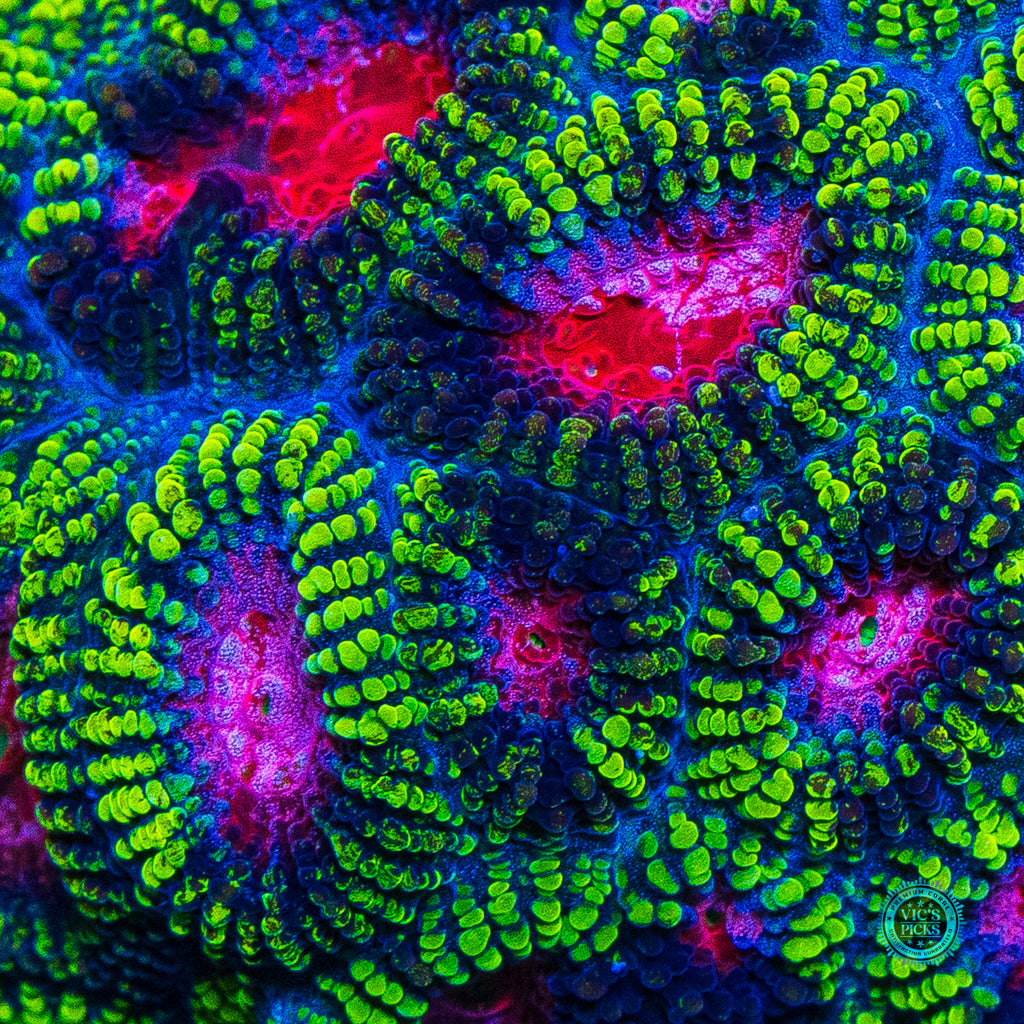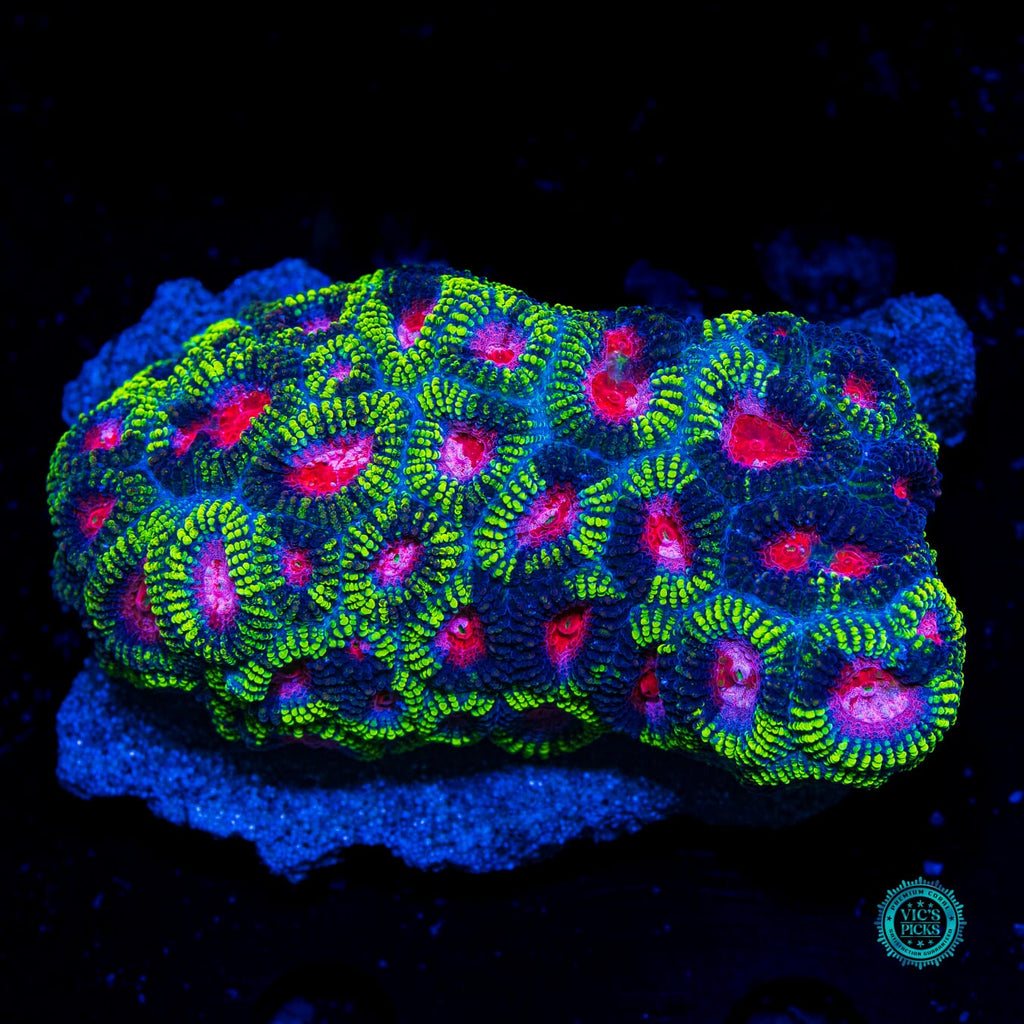 This Favia is perfect for the lower section of a mixed reef with par around 100 to 125 and low to medium-low flow. You basically glue it down to a piece of live rock and let it encrust out in all directions. Just don't place anything within a few inches that can't be moved in 6 months (unless it's another coral with a similar sting). We also recommend target feeding this LPS once a week, but only when it's feeding tentacles are extended a little bit (this usually occurs while feeding your fish, or before the lights come off or before they turn off for the night.)