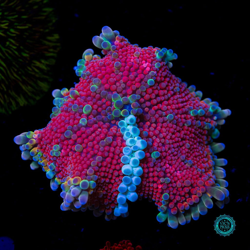 Make sure to place this mushroom low, like super low in your reef (less than 100 par), with low flow. We also recommend target feeding it once per week, and if you do you'll be overjoyed to see it start to grow more quickly and eventually bud off and spread out in all directions! The trick with feeding Mushroom Corals is to hold a piece of meaty food in place with a pair of tweezers until the Mushroom grabs a hold of the food. And once the mushroom grabs onto it you will then be able to watch the cool process of the mushroom slowly closing up around the piece of food. It’s awesome to watch! Just like everything in reefing, be patient and you will be amazed at what transpires!